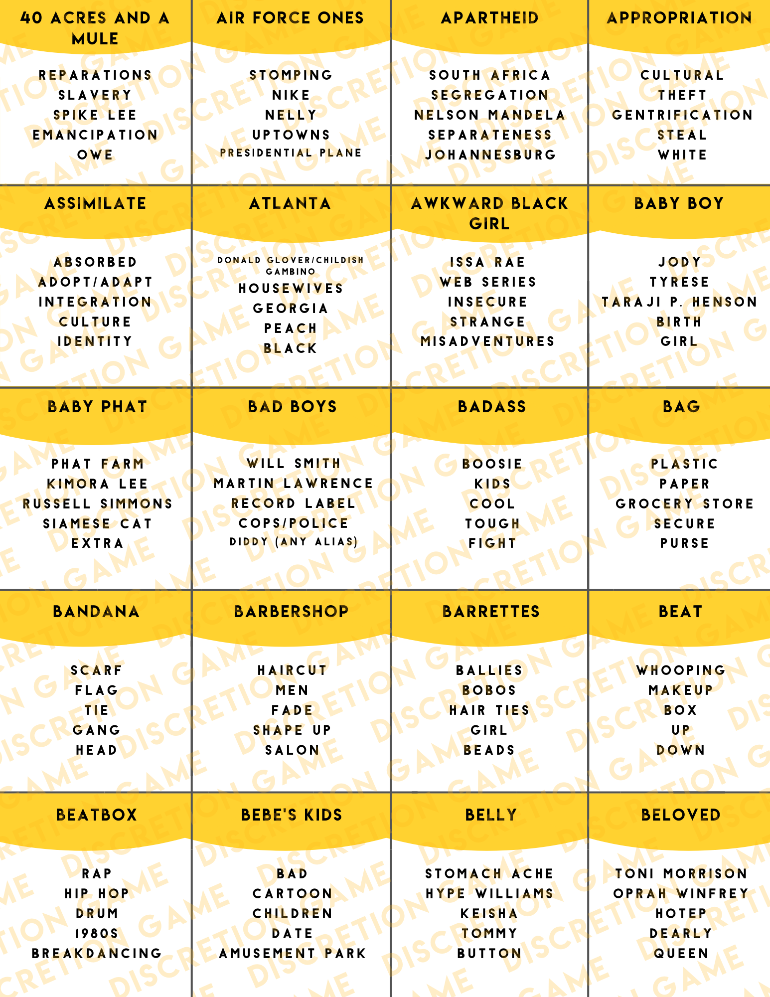 Think you know Black culture? DISCRETION adds Black culture and flavor to a classic guessing party game. We’re celebrating Black excellence all year long with virtual BLK Game Night.